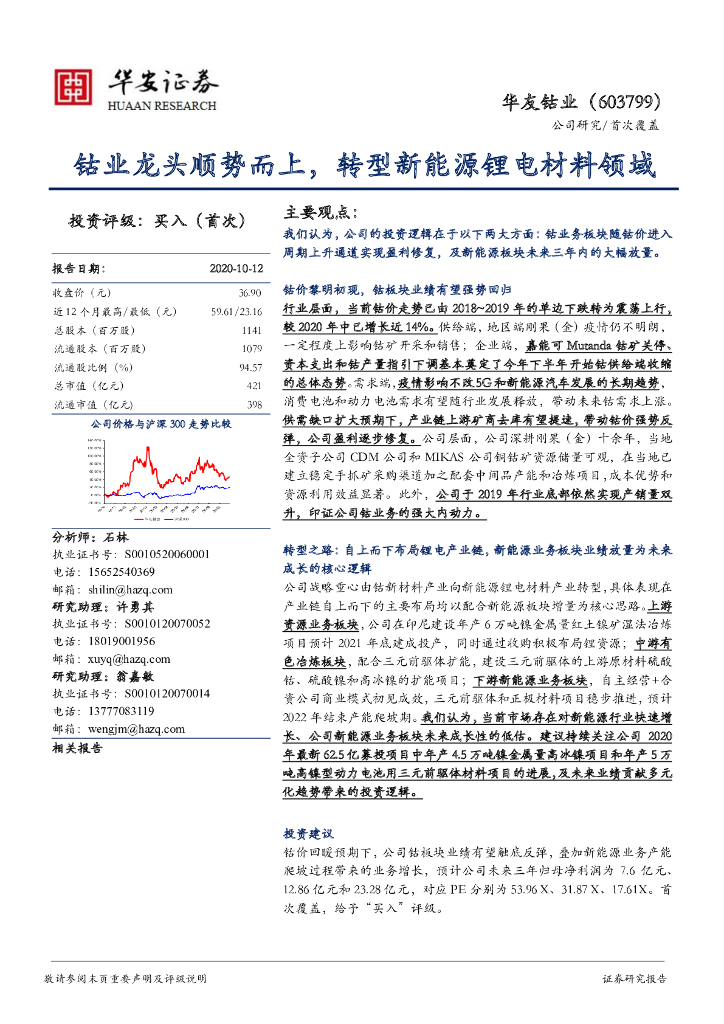 华安证券:华友钴业(603799)-钴业龙头顺势而上,转型新能源锂电材料领域.pdf
