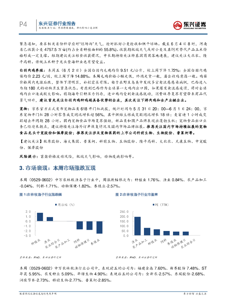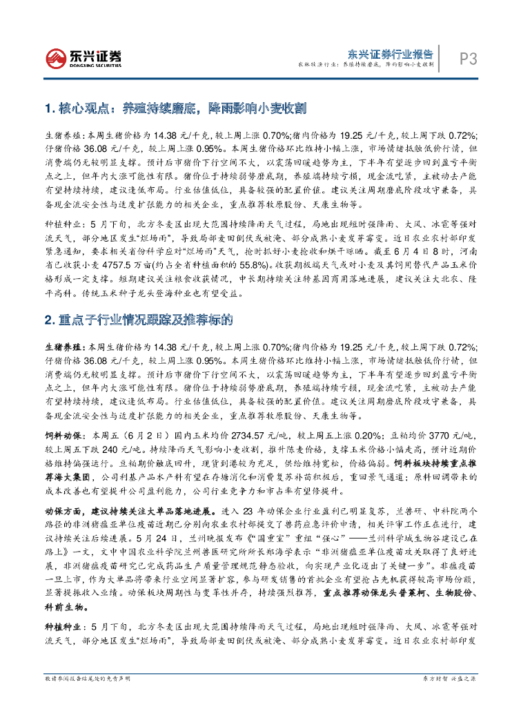 东兴证券:行业周观点(2023年第22周):农林牧渔行业:养殖持续磨底,降雨影响小麦收割.pdf