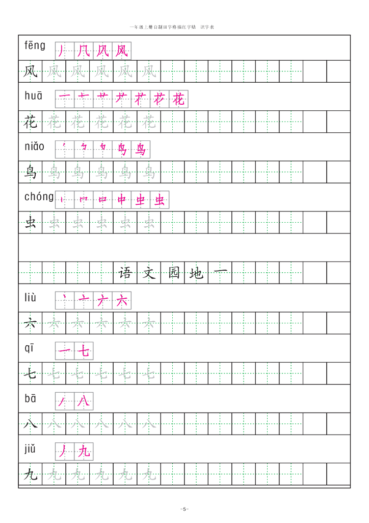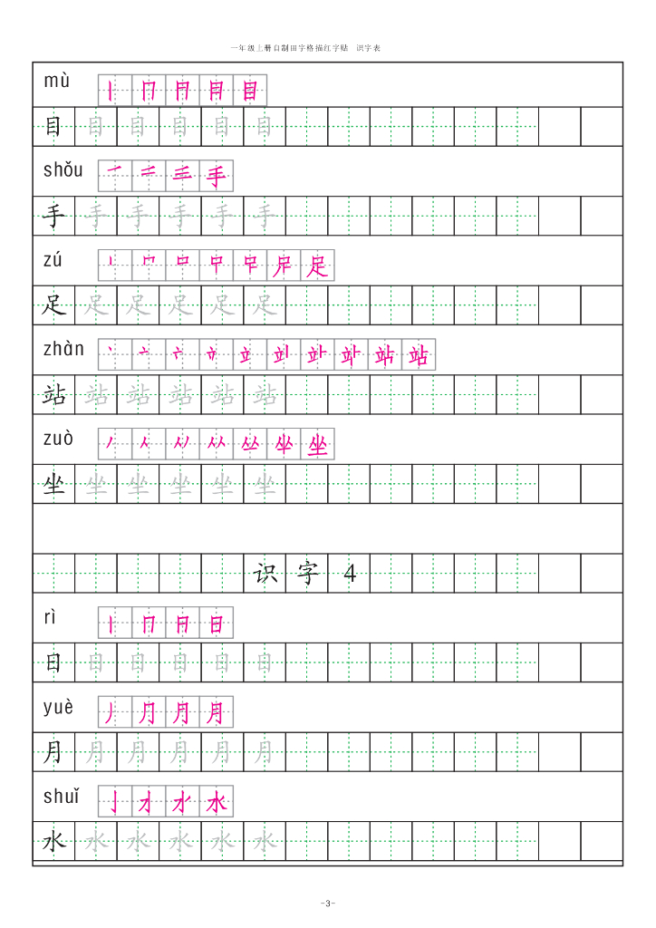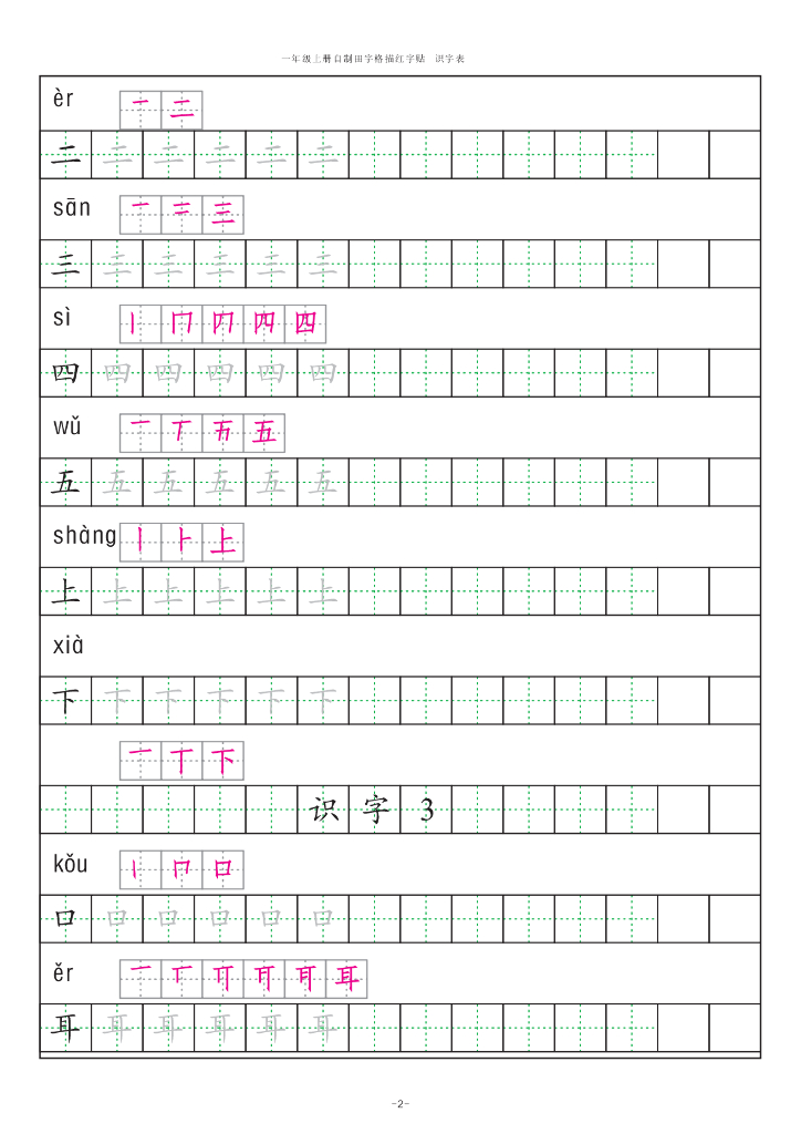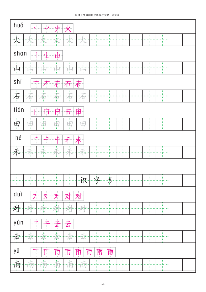 【新部编版】一年级上册语文:识字表田字格字帖描红纸.pdf