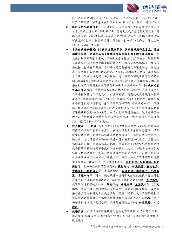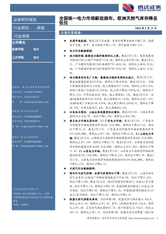 信达证券:公用事业行业-电力天然气周报:全国统一电力市场新政颁布,欧洲天然气库存降至低位.pdf