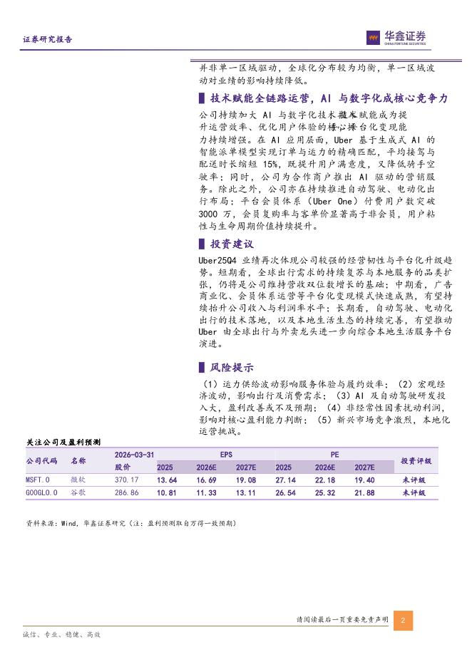 华鑫证券:计算机行业点评报告:优步(Uber):出行+外卖双轮驱动,AI赋能效率升级,全球化布局打开成长空间.pdf