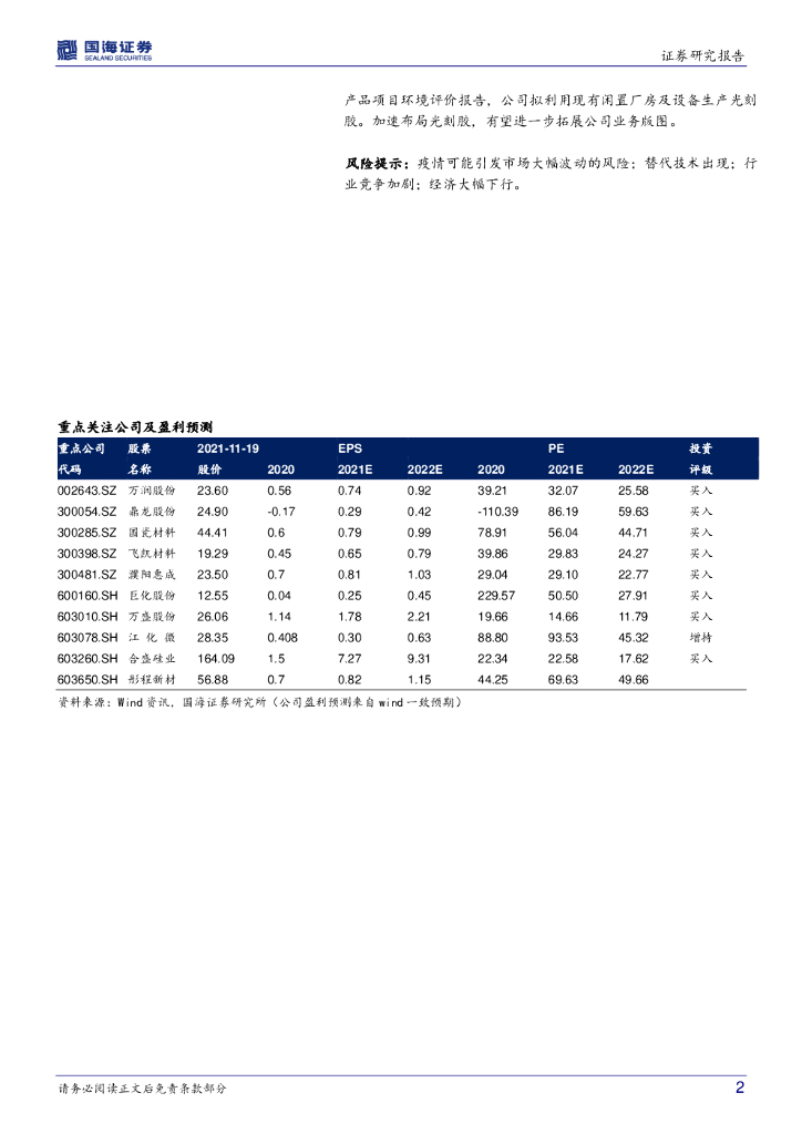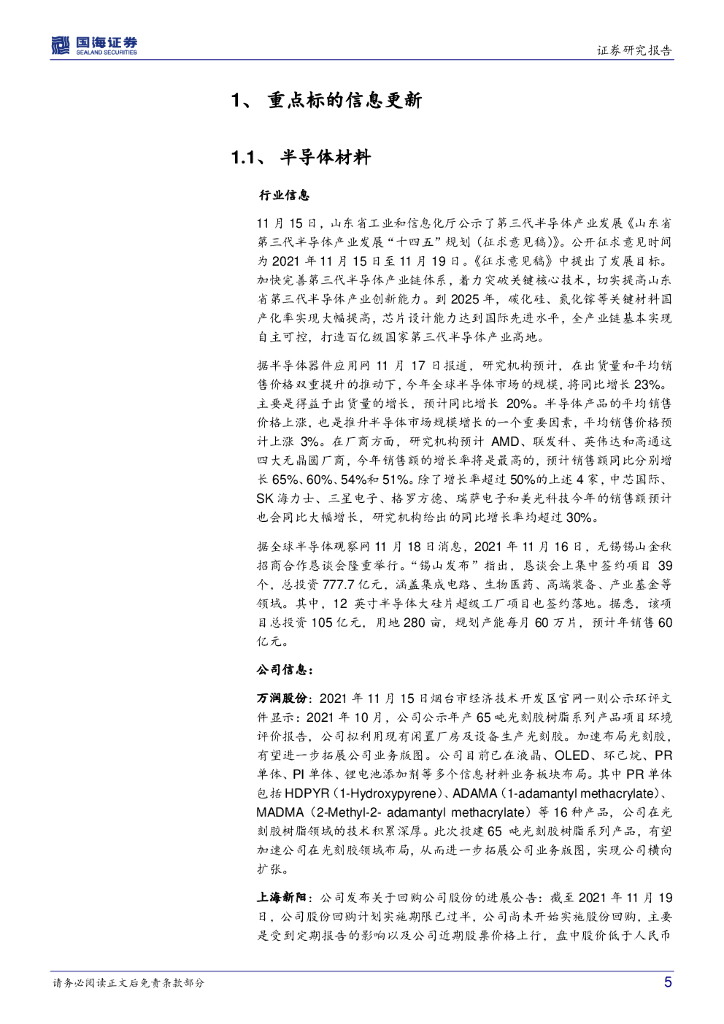 国海证券:化工行业新材料周报:山东省将重点发展第三代半导体材料,万润股份光刻胶树脂系列产品环评公示.pdf