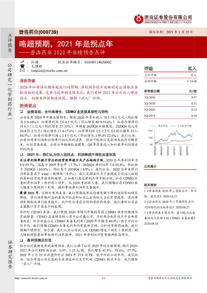 浙商证券:普洛药业2020年业绩预告点评:略超预期,2021年是拐点年.pdf