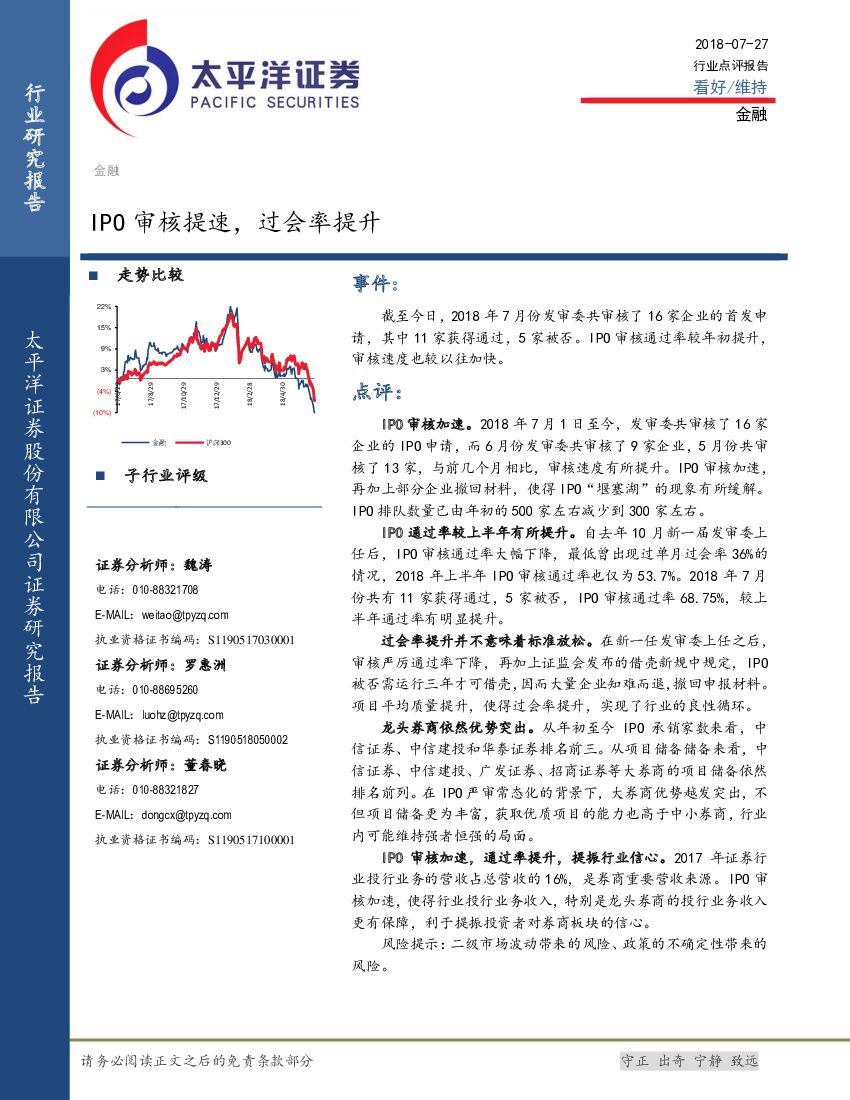 太平洋证券:金融行业点评报告:IPO审核提速,过会率提升.pdf