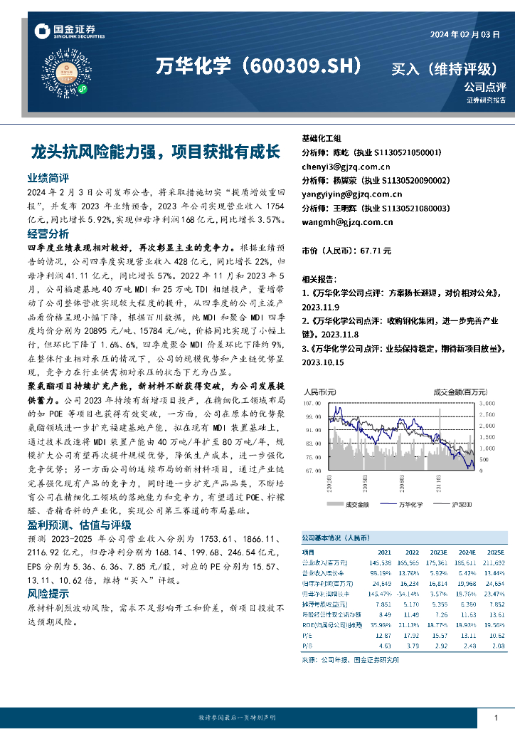 国金证券:万华化学(600309)-龙头抗风险能力强,项目获批有成长.pdf