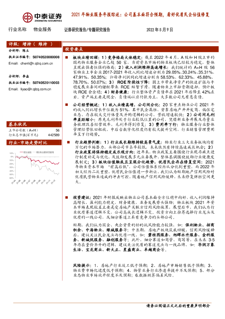 中泰证券:2021年物业服务年报综述:公司基本面符合预期,看好优质民企估值修复.pdf