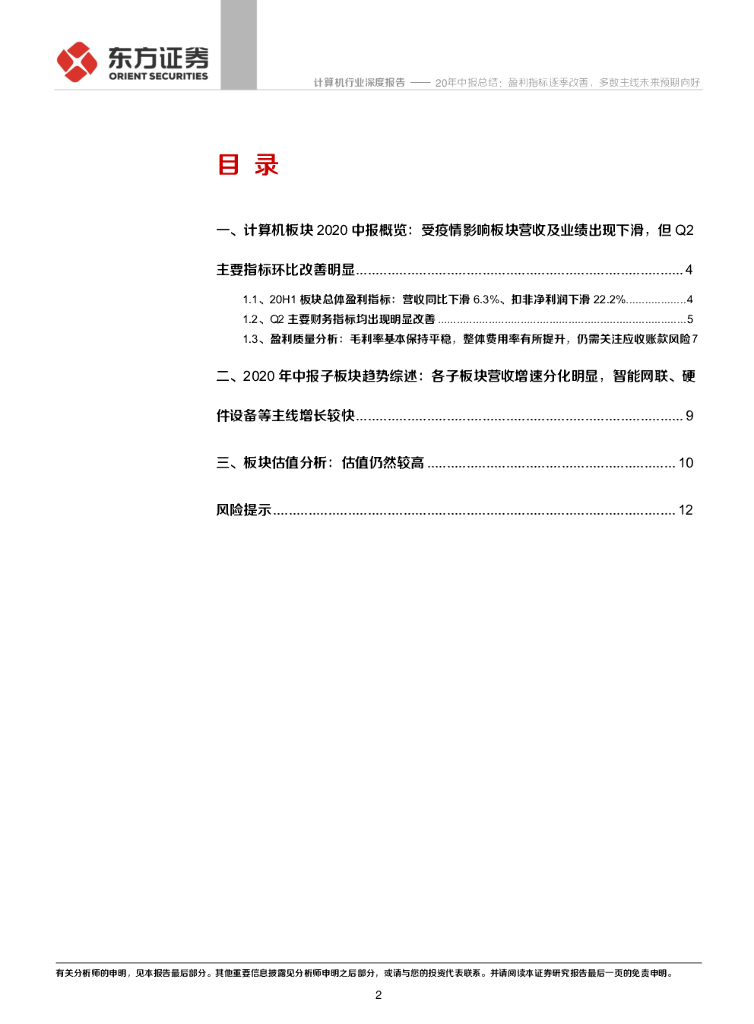 东方证券:计算机行业20年中报总结:盈利指标逐季改善,多数主线未来预期向好.pdf