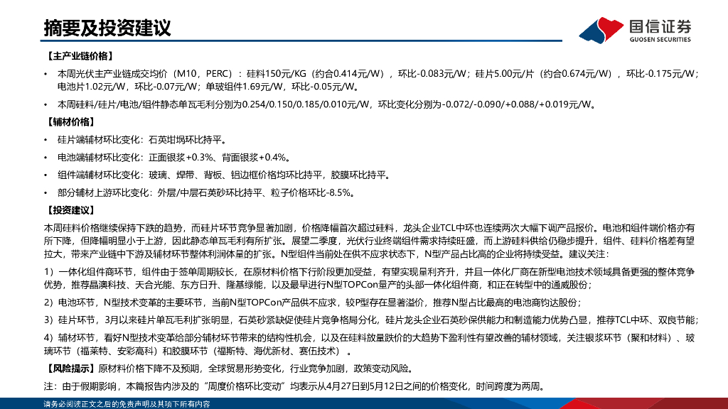 国信证券:光伏产业链周评(5月第2周):硅片价格大幅下降,N型电池溢价显著.pdf