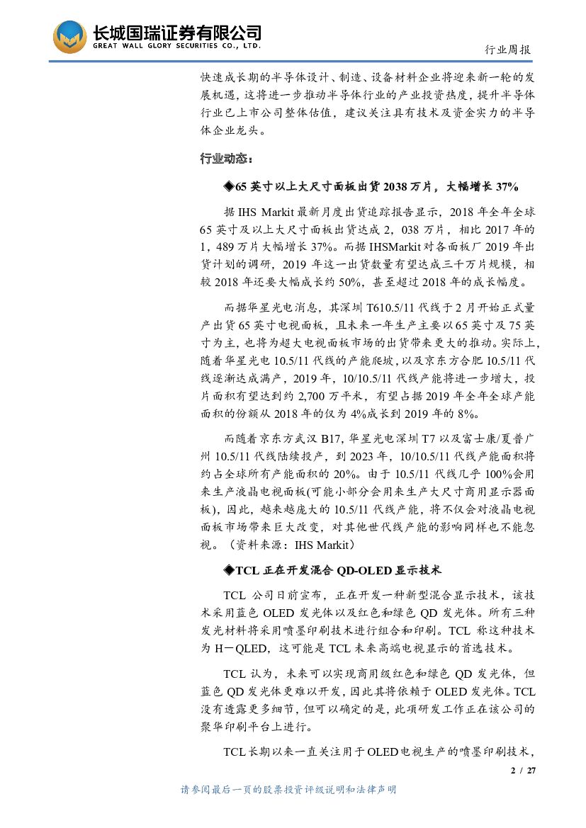 长城国瑞证券:电子行业双周报2019年第6期(总第6期):半导体企业成科创板主力,半导体行业投资热度有望拉升.pdf
