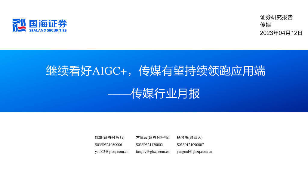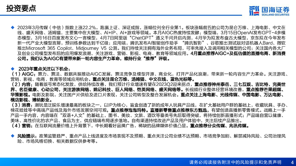 国海证券:传媒行业月报:继续看好AIGC+,传媒有望持续领跑应用端.pdf