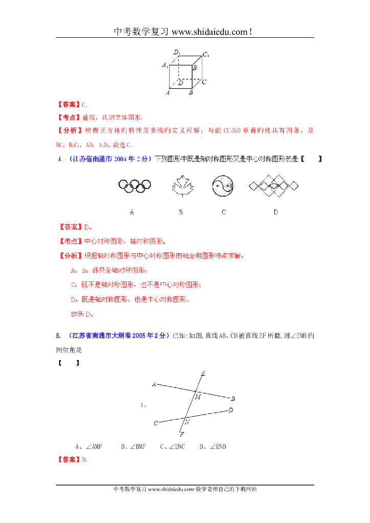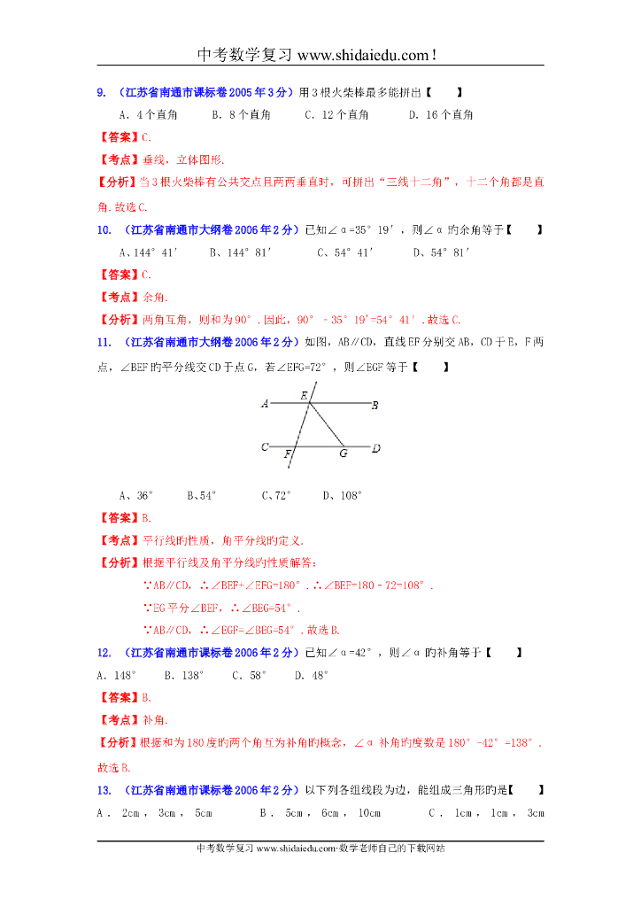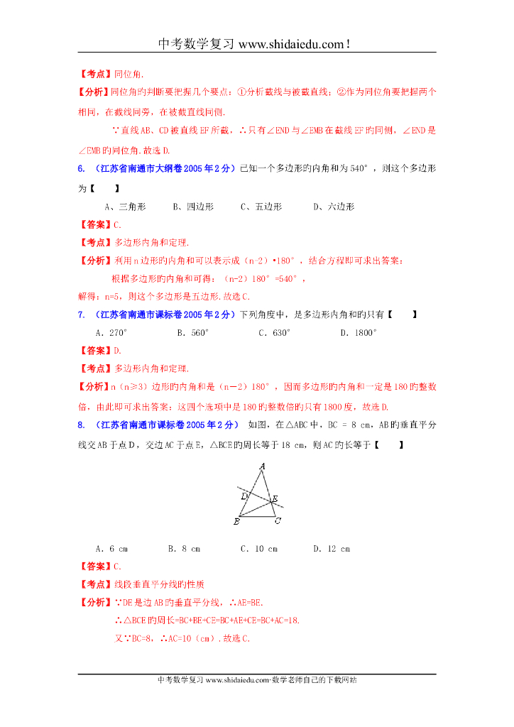 江苏南通-中考数学试题分类解析专题8:平面几何基础.doc