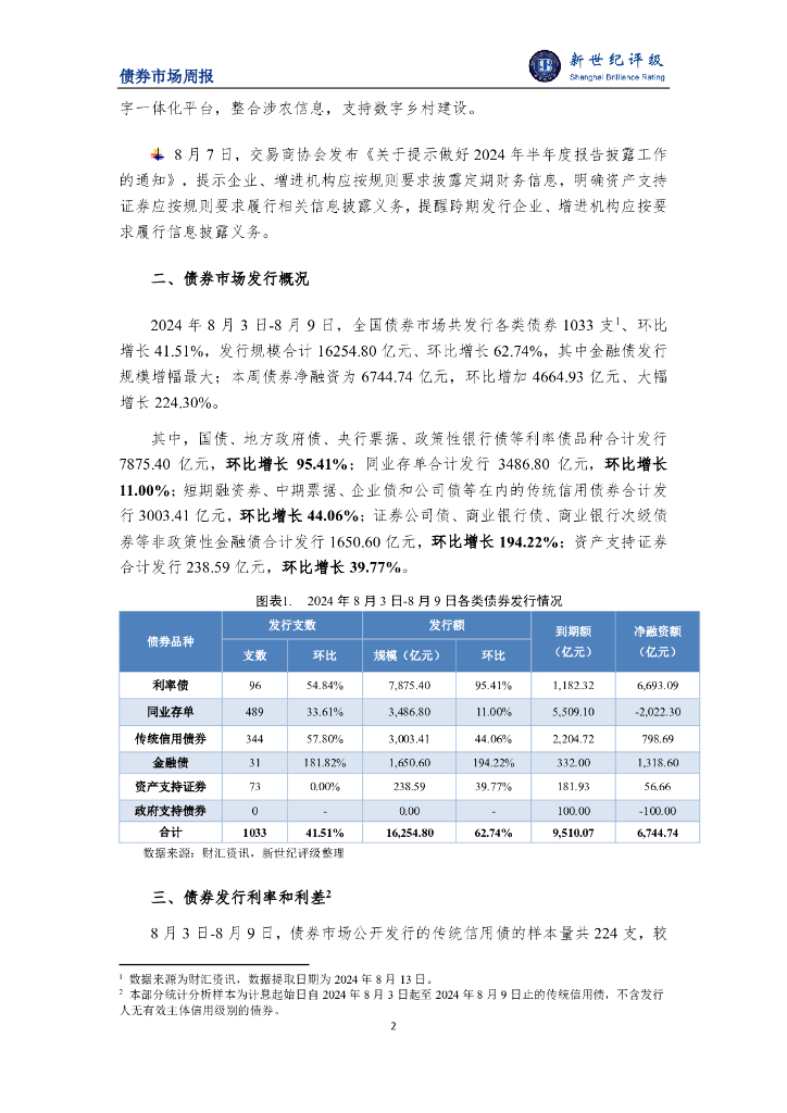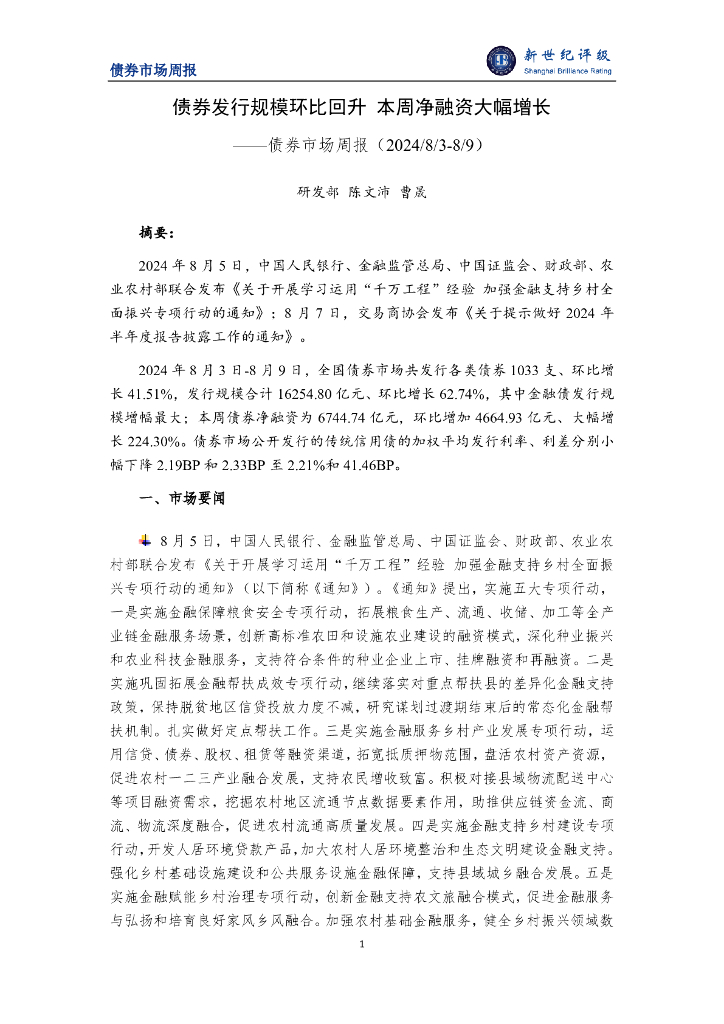 新世纪评级:债券发行规模环比回升 本周净融资大幅增长——债券市场周报(2024/8/3-8/9).pdf