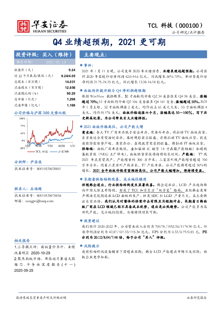 华安证券:TCL科技(000100)-Q4业绩超预期,2021更可期.pdf