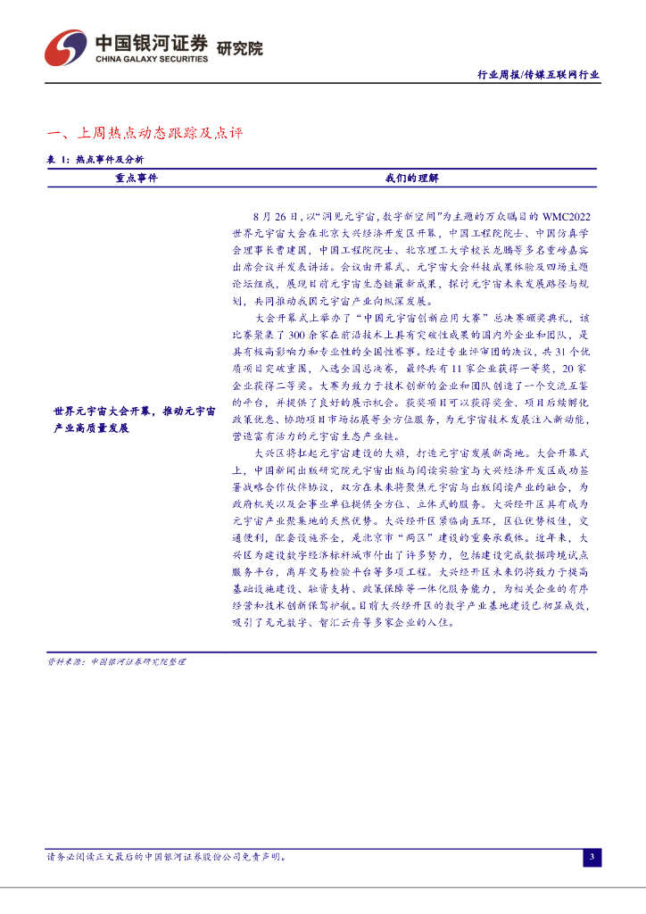 中国银河:传媒互联网行业周报:世界元宇宙大会开幕,推动元宇宙产业高质量发展.pdf