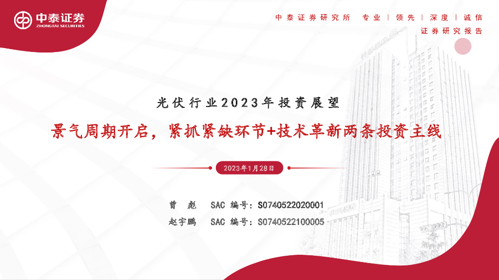 中泰证券:光伏行业2023年投资展望:景气周期开启,紧抓紧缺环节+技术变化两条投资主线.pdf