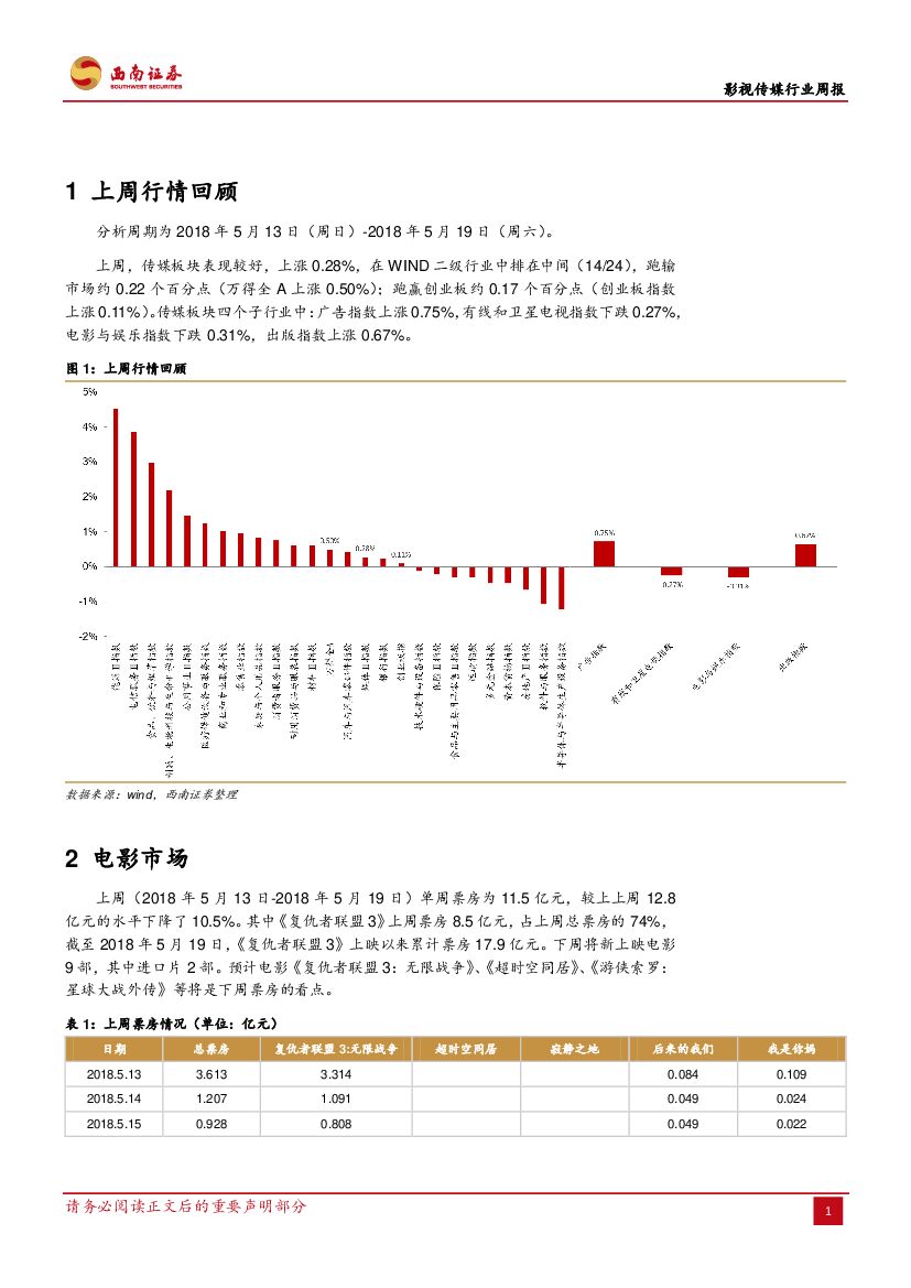 西南证券:影视传媒行业周报:《复联3》票房近20亿,《归去来》表现不俗.pdf