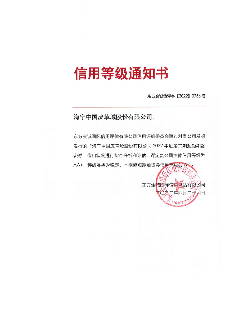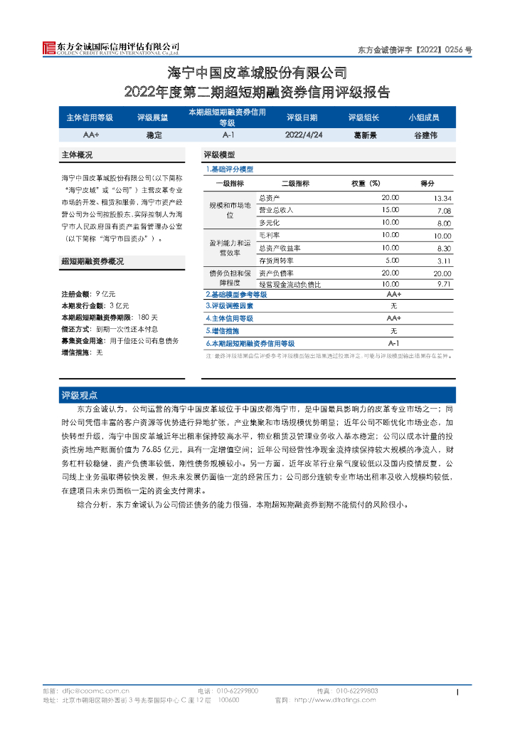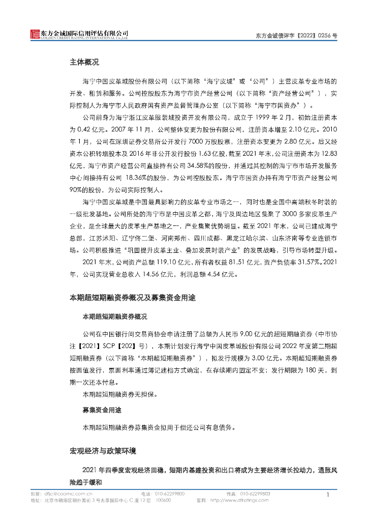 东方金诚:海宁中国皮革城股份有限公司2022年度第二期超短期融资券信用评级报告.pdf