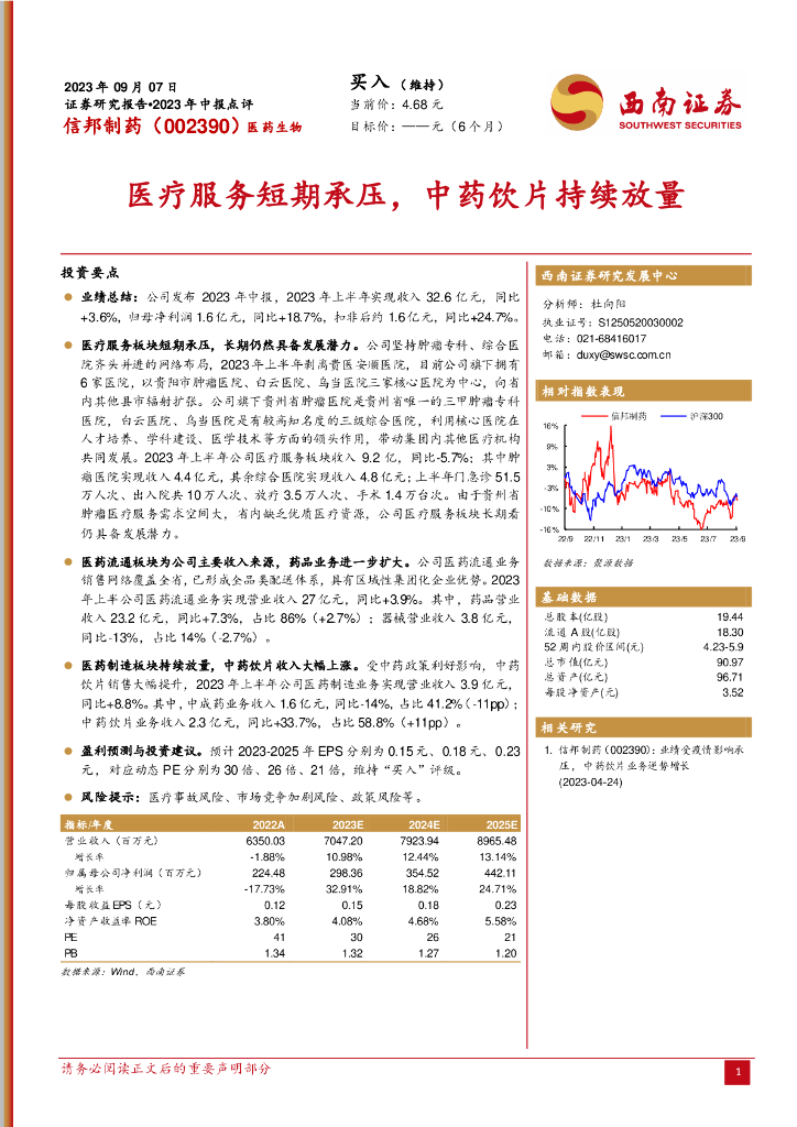 西南证券:信邦制药(002390)-医疗服务短期承压,中药饮片持续放量.pdf