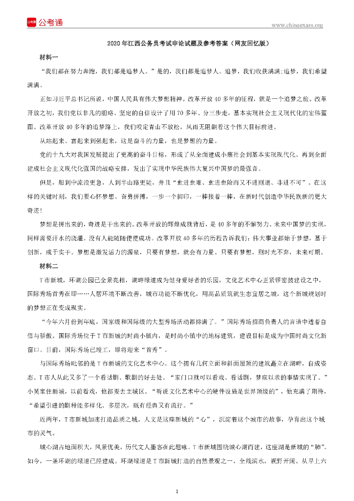 2020年江西公务员考试申论试题及参考答案(省级).pdf