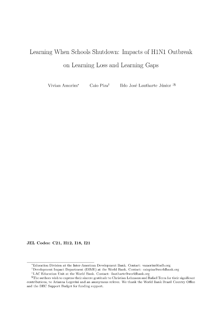 世界银行:学校关闭时的学习:H1N1疫情对学习损失和学习差距的影响(英文版).pdf