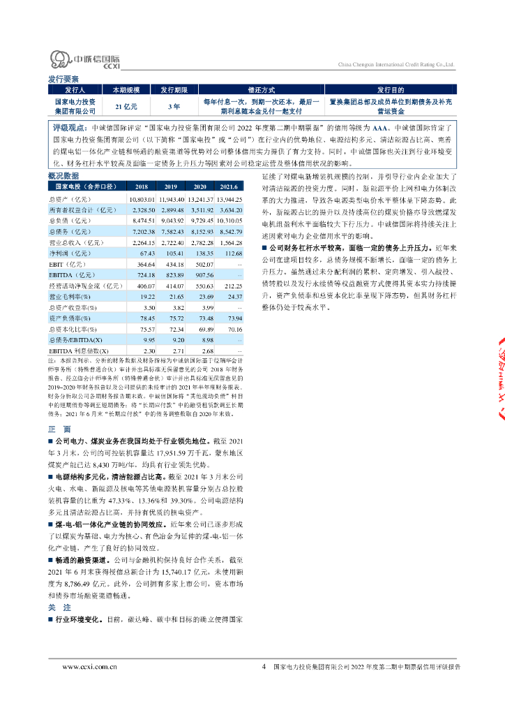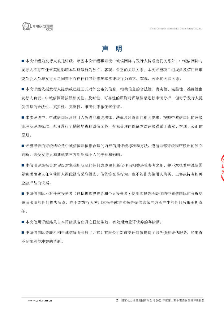 中诚信:国家电力投资集团有限公司2022年度第二期中期票据信用评级报告.pdf