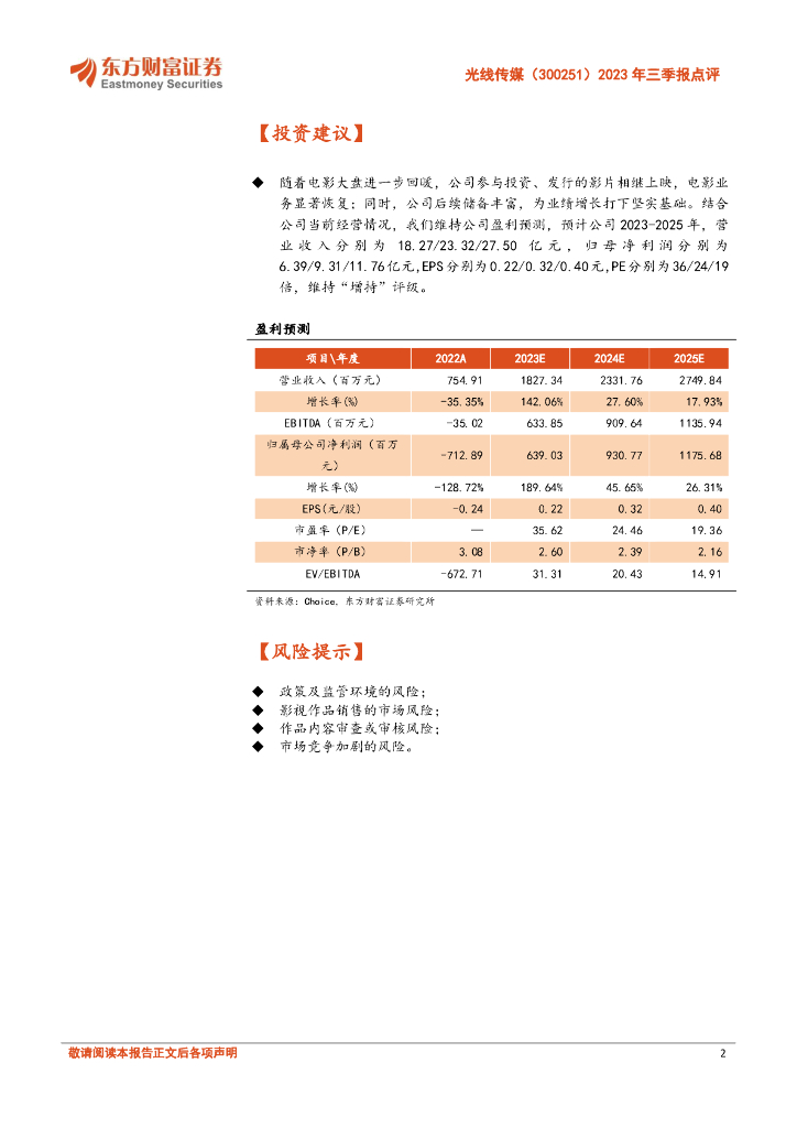 东方财富证券:光线传媒(300251)-2023年三季报点评:业绩持续回暖,储备项目丰富有望贡献增量(2023-10-31).pdf