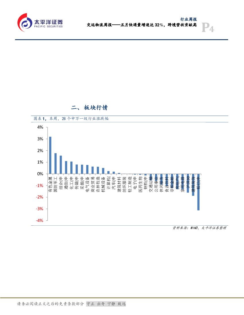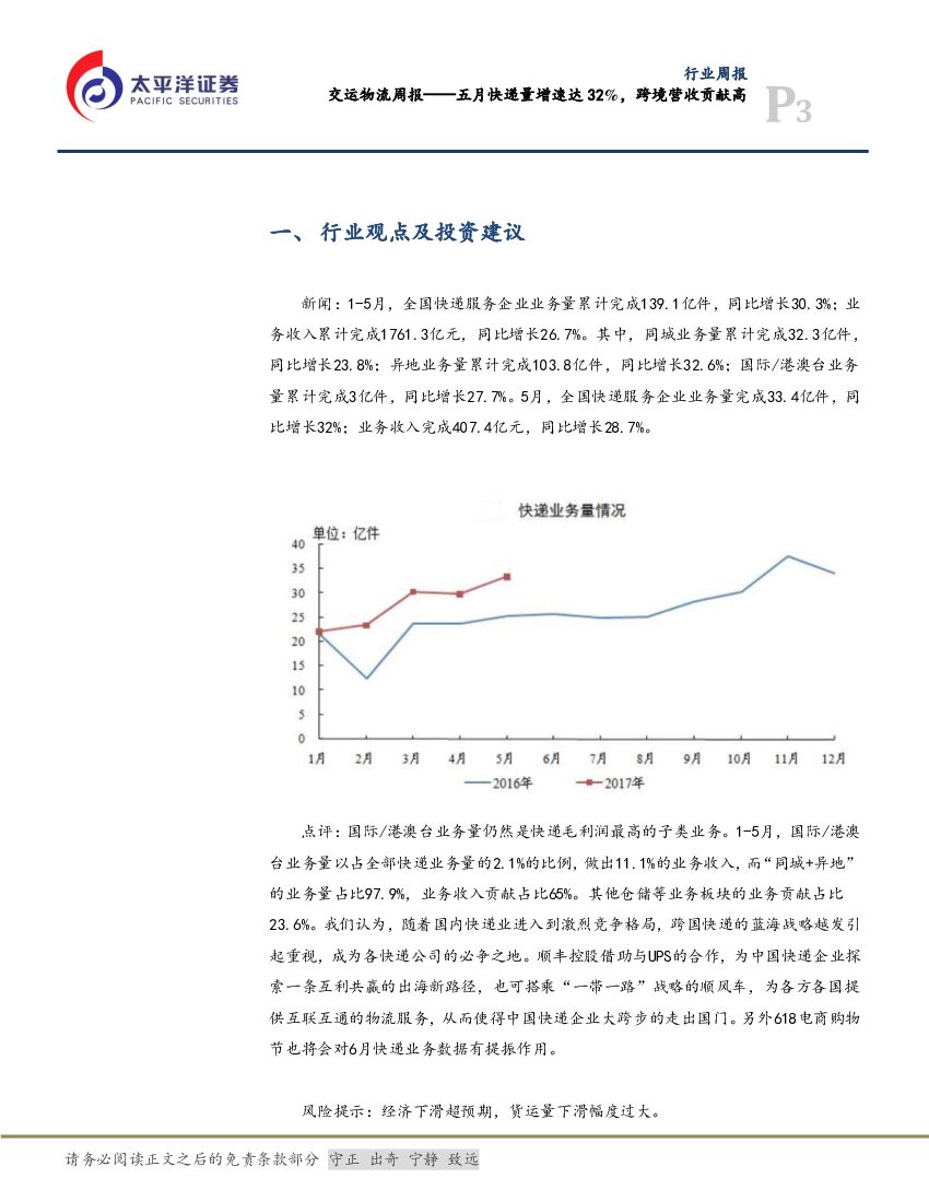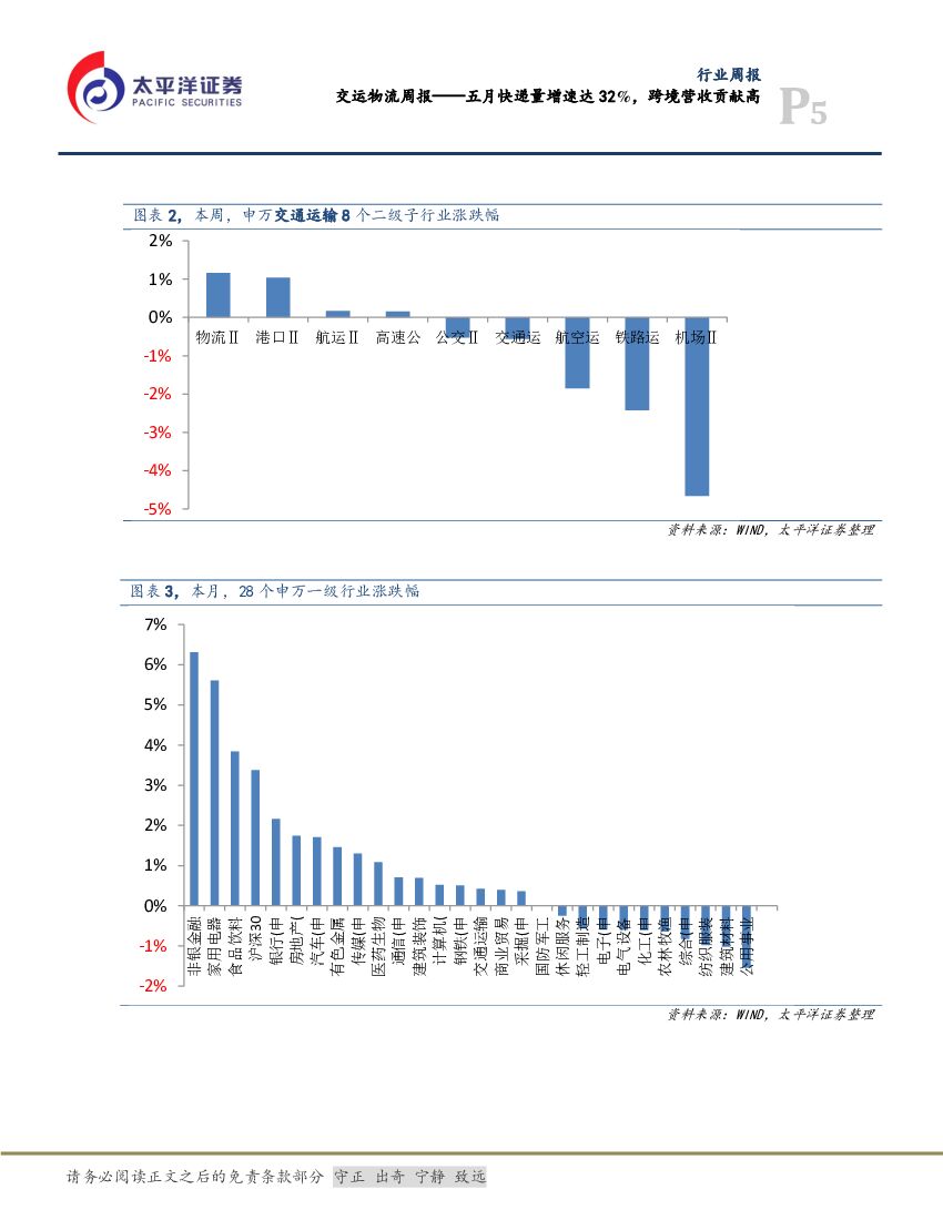 太平洋证券:交运物流周报:五月快递量增速达32%,跨境营收贡献高.pdf