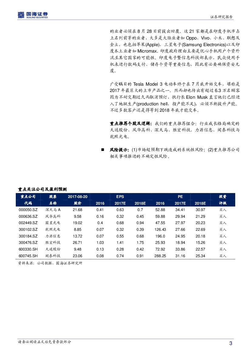 国海证券:电子行业周报:Tesla Model 3开始交付,印度要求手机厂商提供资安信息.pdf
