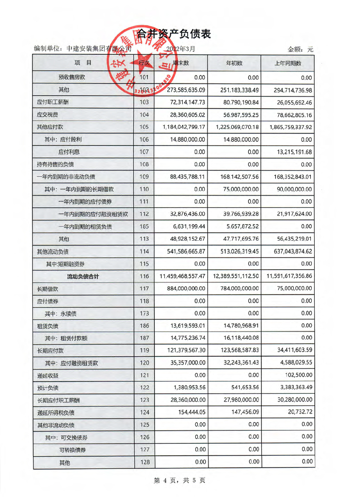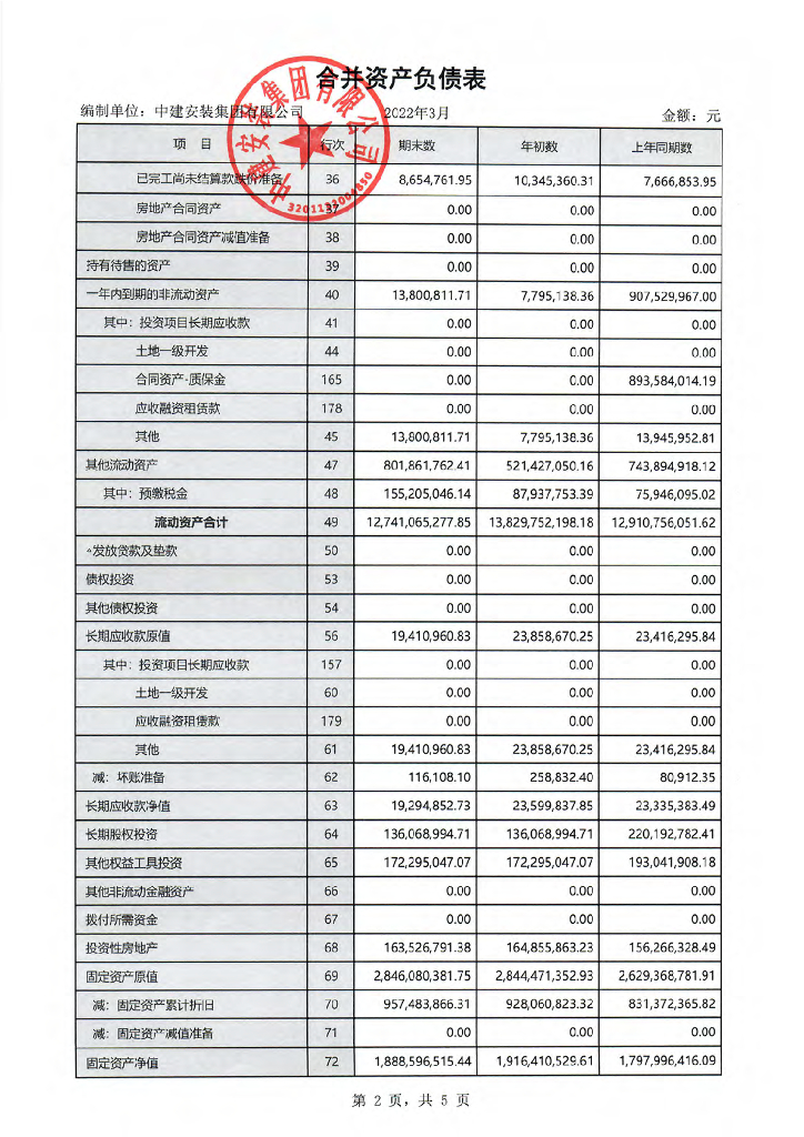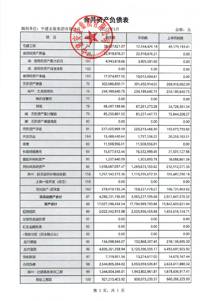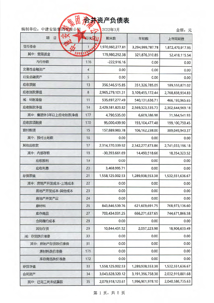 中建安装集团有限公司2022年一季度合并及母公司财务报表.pdf