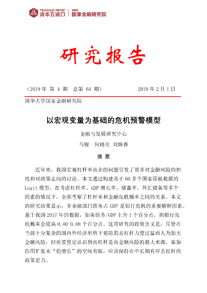 清华五道口:以宏观变量为基础的危机预警模型.pdf