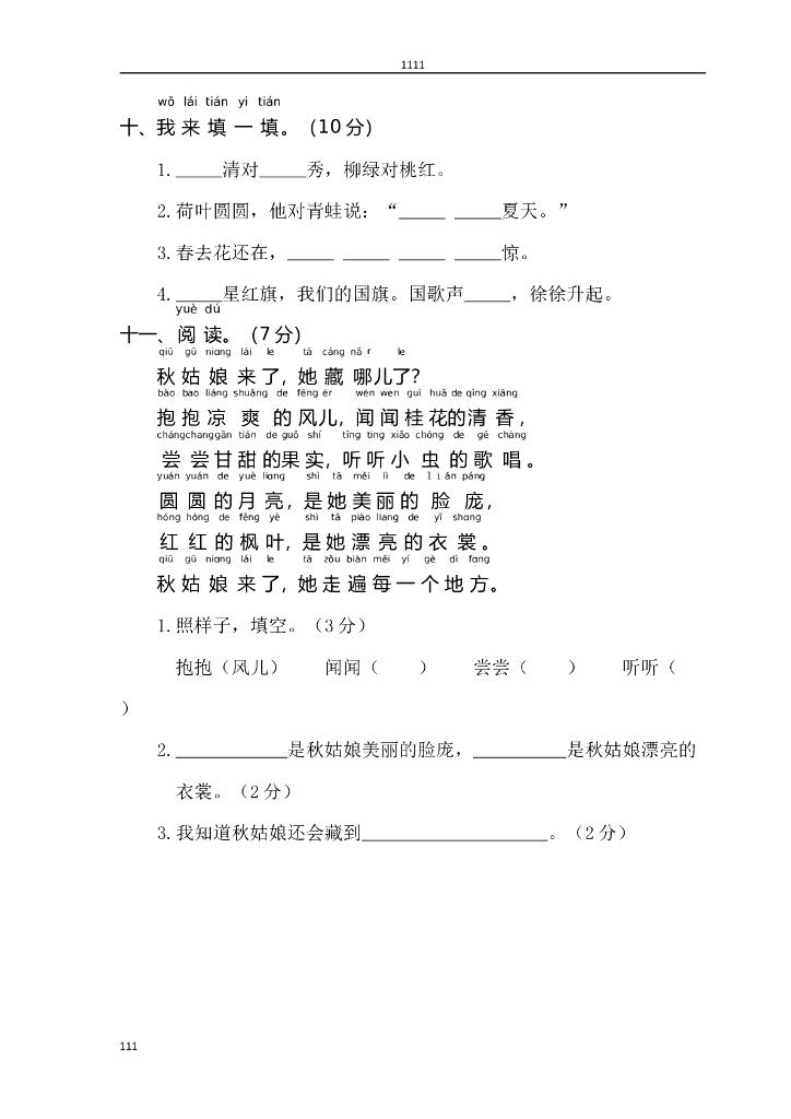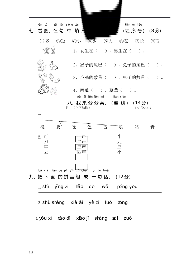 部编语文一年级上册期末试卷 (2).doc