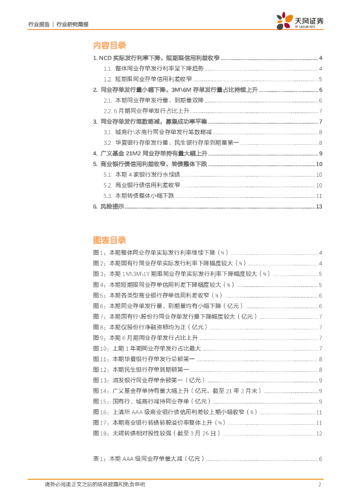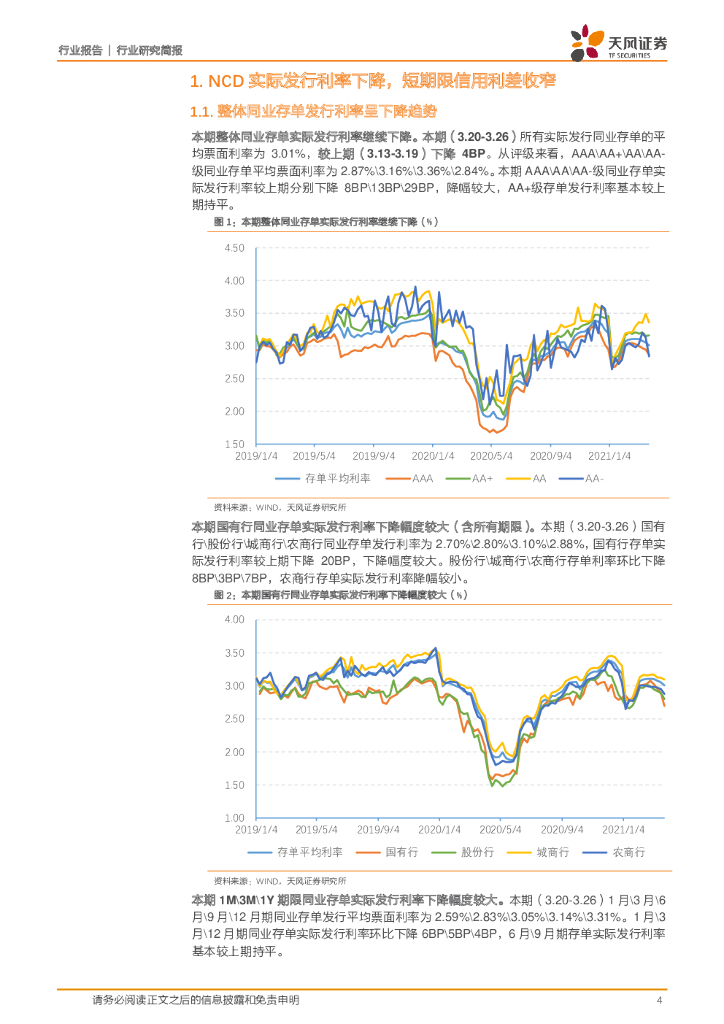 天风证券:银行行业研究简报-NCD发行利率续降,信用利差持续收窄:银行债务融资周报.pdf