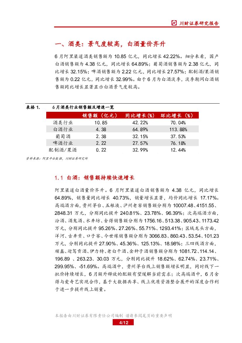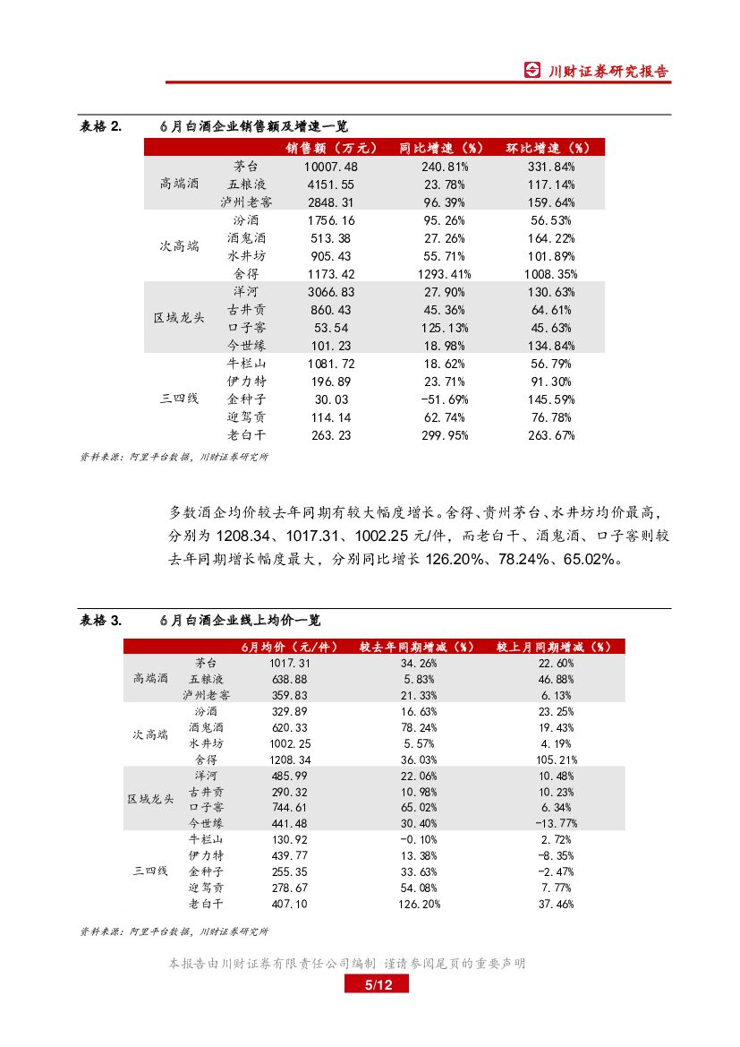 川财证券:食品饮料行业6月线上数据分析专题:白酒销售额持续增长,保健品销量短期承压.pdf