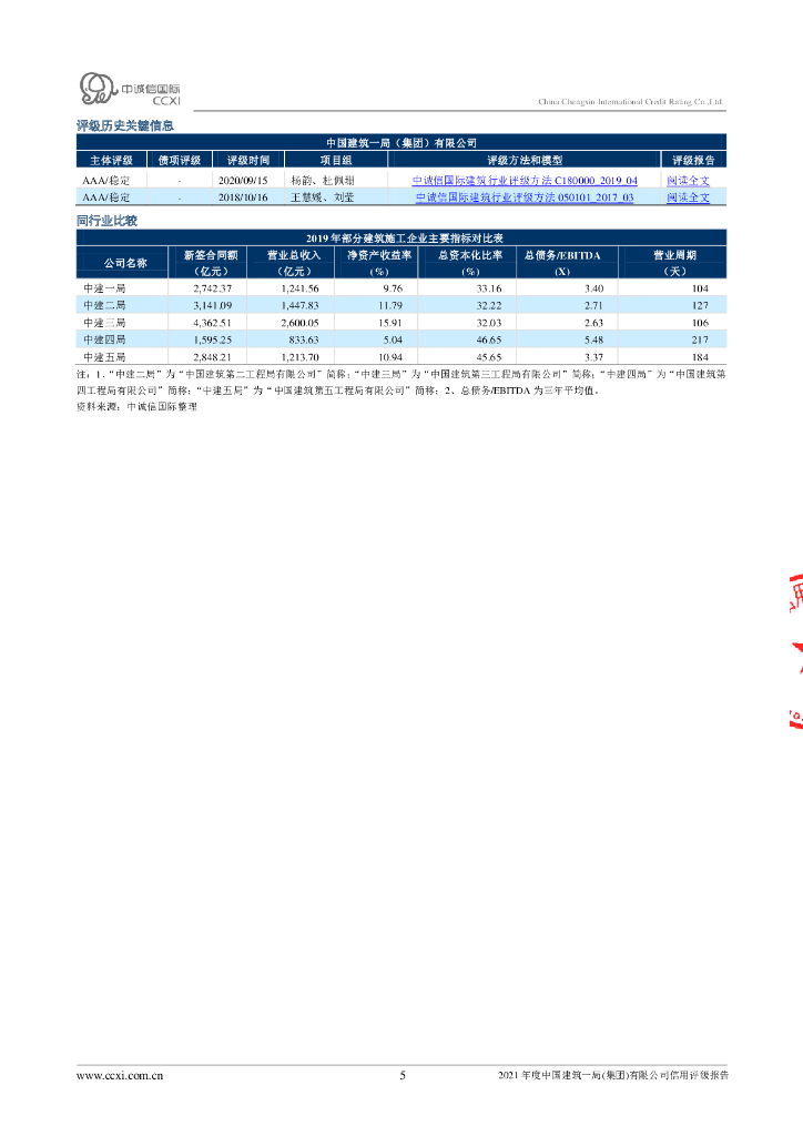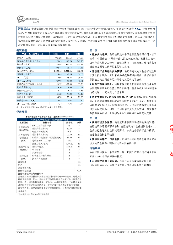 中诚信:2021年度中国建筑一局(集团)有限公司信用评级报告.pdf