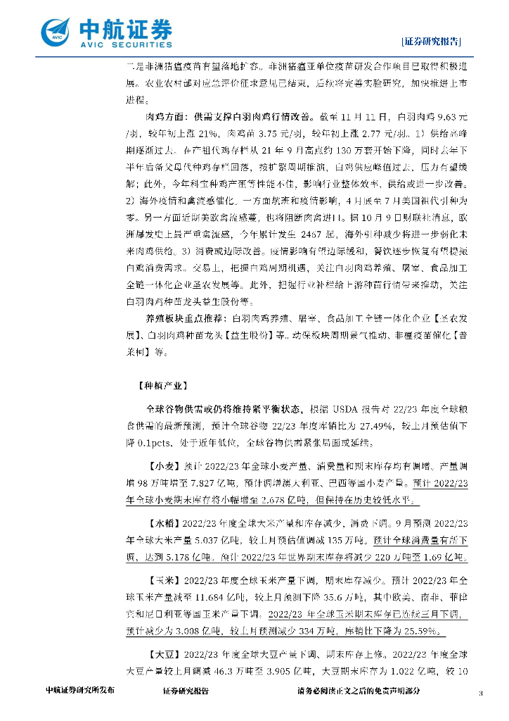 中航证券:农林牧渔行业周观点:11月猪企销售量增价减,看好养殖链.pdf