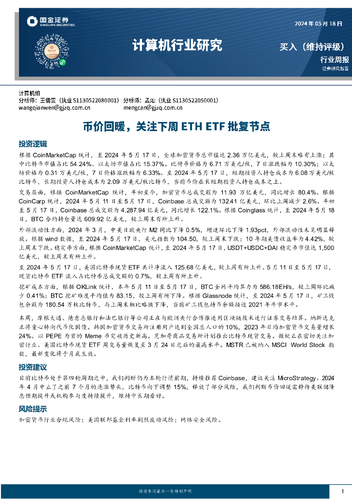 国金证券:计算机行业周报:币价回暖,关注下周ETHETF批复节点.pdf