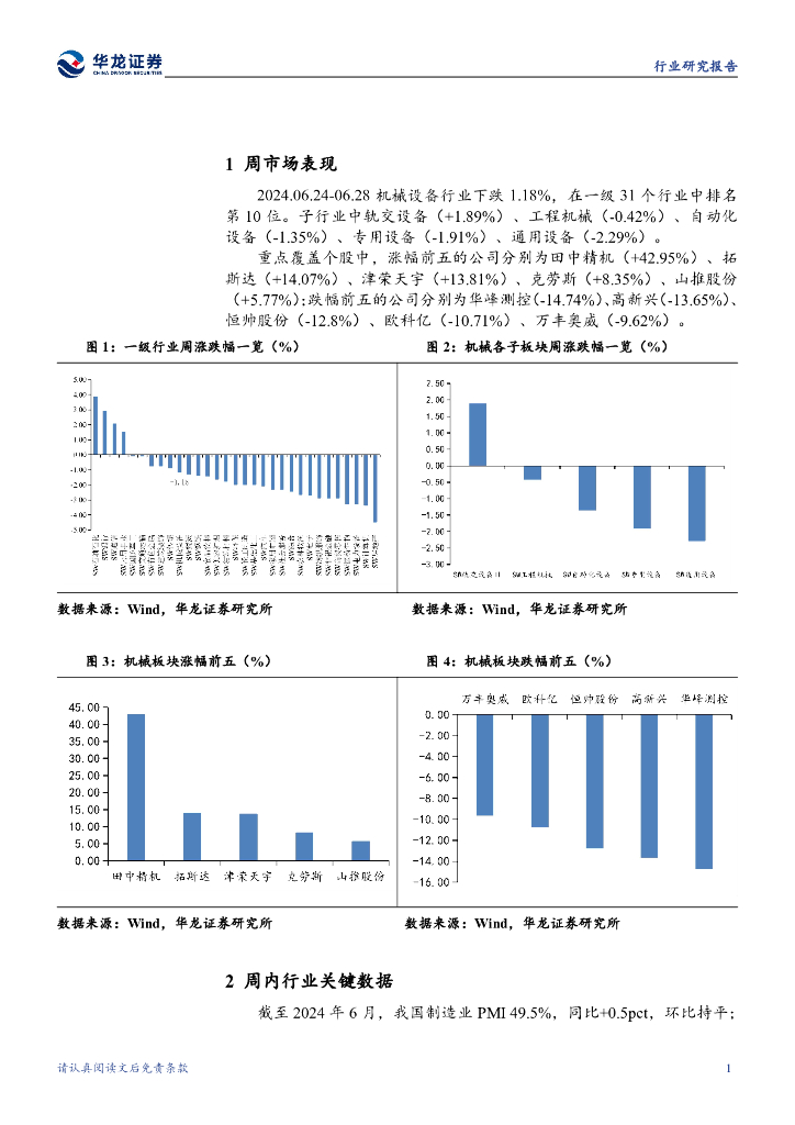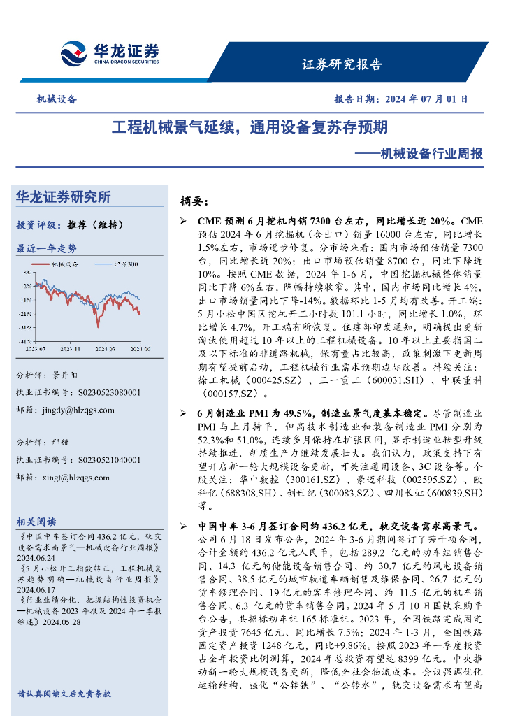 华龙证券:机械设备行业周报:工程机械景气延续,通用设备复苏存预期.pdf