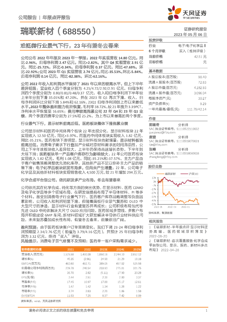天风证券:瑞联新材(688550)-难抵御行业景气下行,23年有望冬去春来.pdf