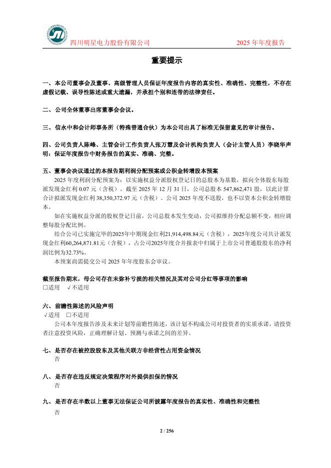 600101-明星电力:四川明星电力股份有限公司2025年年度报告.pdf