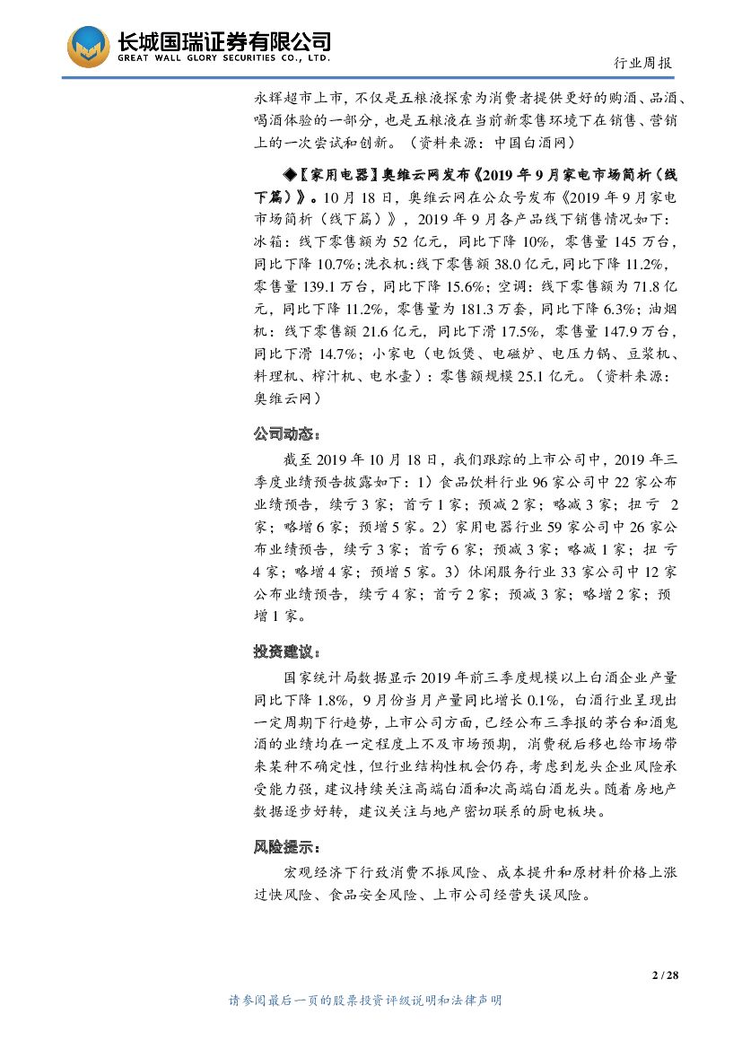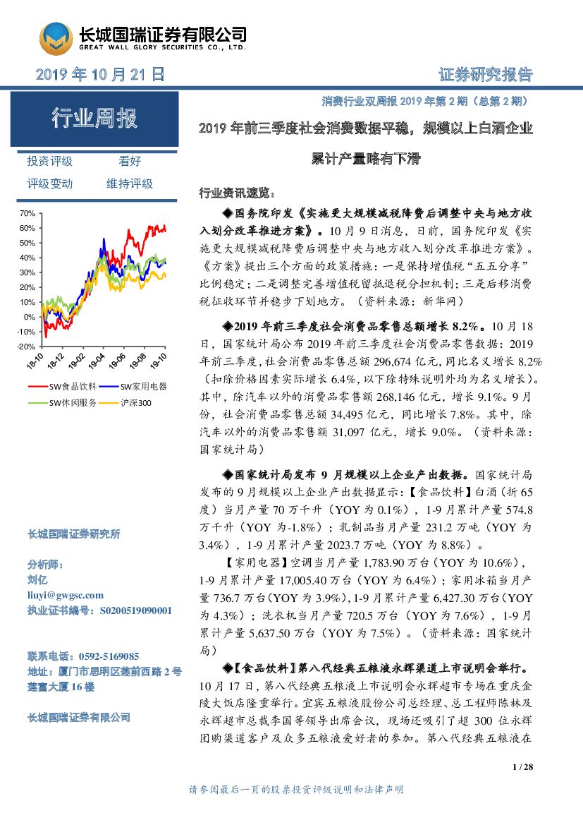 长城国瑞证券:消费行业双周报2019年第2期(总第2期):2019年前三季度社会消费数据平稳,规模以上白酒企业累计产量略有下滑.pdf