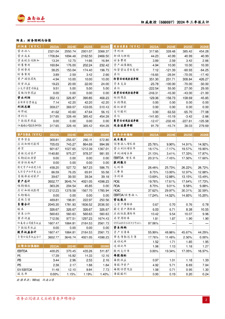 西南证券:纽威数控(688697)-2024年三季报点评:收入端逆势增长,净利润小幅下滑符合预期.pdf