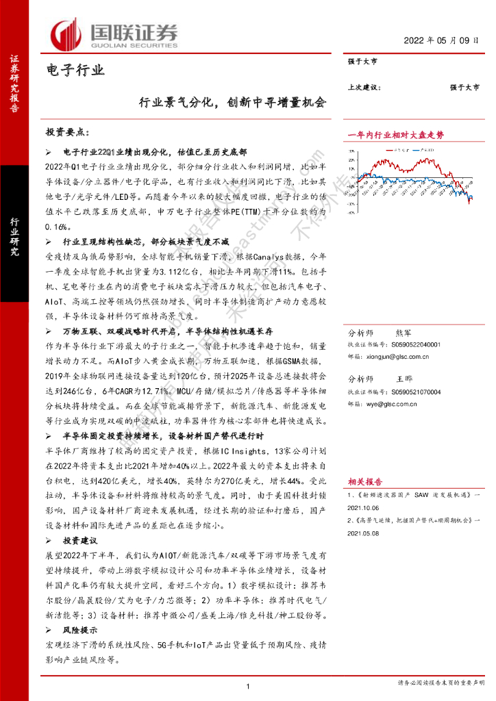 国联证券:电子行业:行业景气分化,创新中寻增量机会.pdf