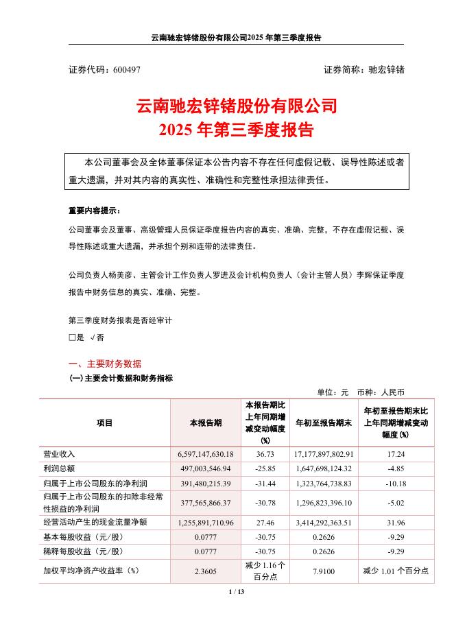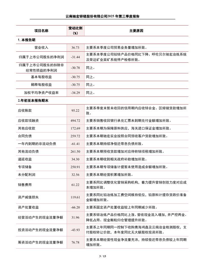 600497-驰宏锌锗:驰宏锌锗2025年第三季度报告.pdf