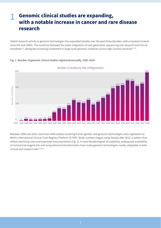WHO世界卫生组织:1990-2024年人类基因组学技术在临床研究中的应用:研究现状报告(英文版).pdf