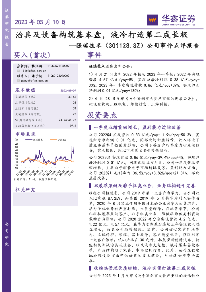 华鑫证券:强瑞技术(301128)-公司事件点评报告:治具及设备构筑基本盘,液冷打造第二成长极.pdf