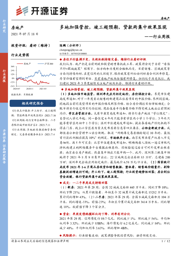 开源证券:房地产行业周报:多地加强管控,竣工超预期,贷款两集中效果显现.pdf
