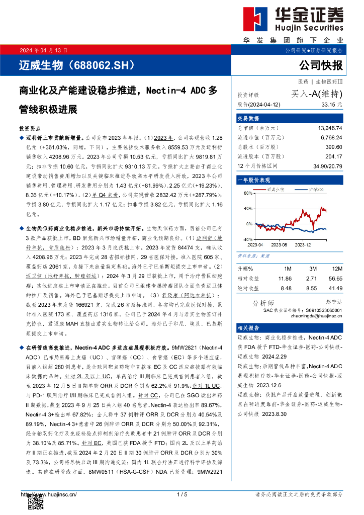 华金证券:迈威生物(688062)-商业化及产能建设稳步推进,Nectin-4ADC多管线积极进展.pdf