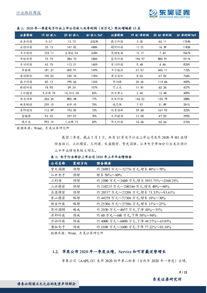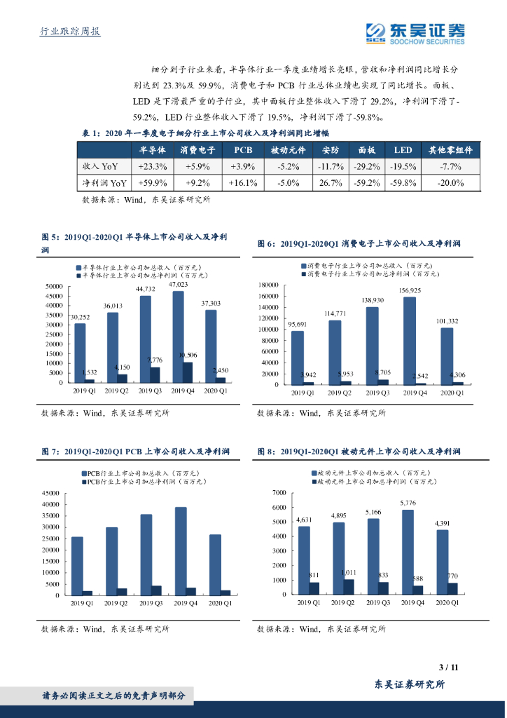 东吴证券:电子行业周报:2020Q1电子行业整体业绩下滑,细分市场龙头增速显著.pdf
