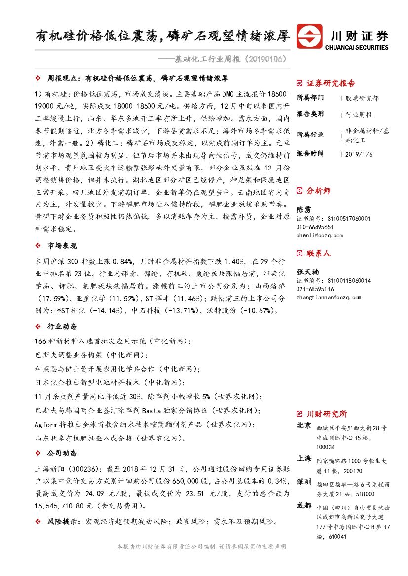 川财证券:基础化工行业周报:有机硅价格低位震荡,磷矿石观望情绪浓厚.pdf