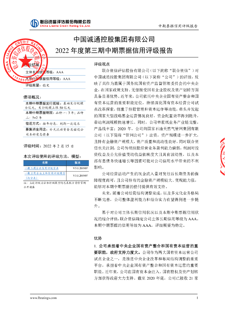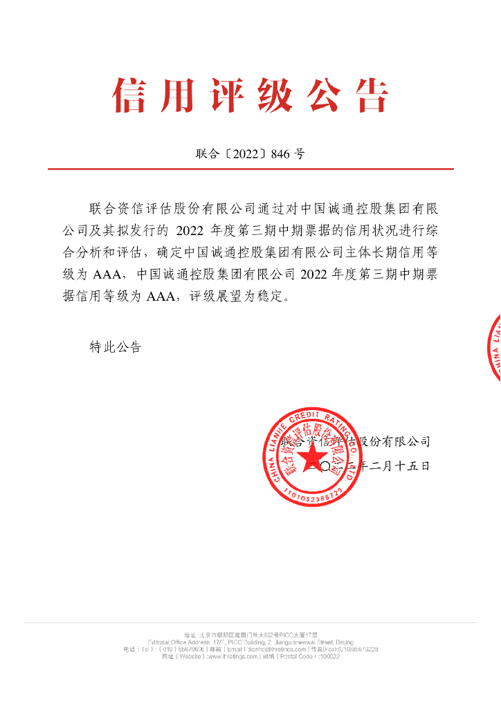 联合资信:中国诚通控股集团有限公司2022年度第三期中期票据信用评级报告.pdf